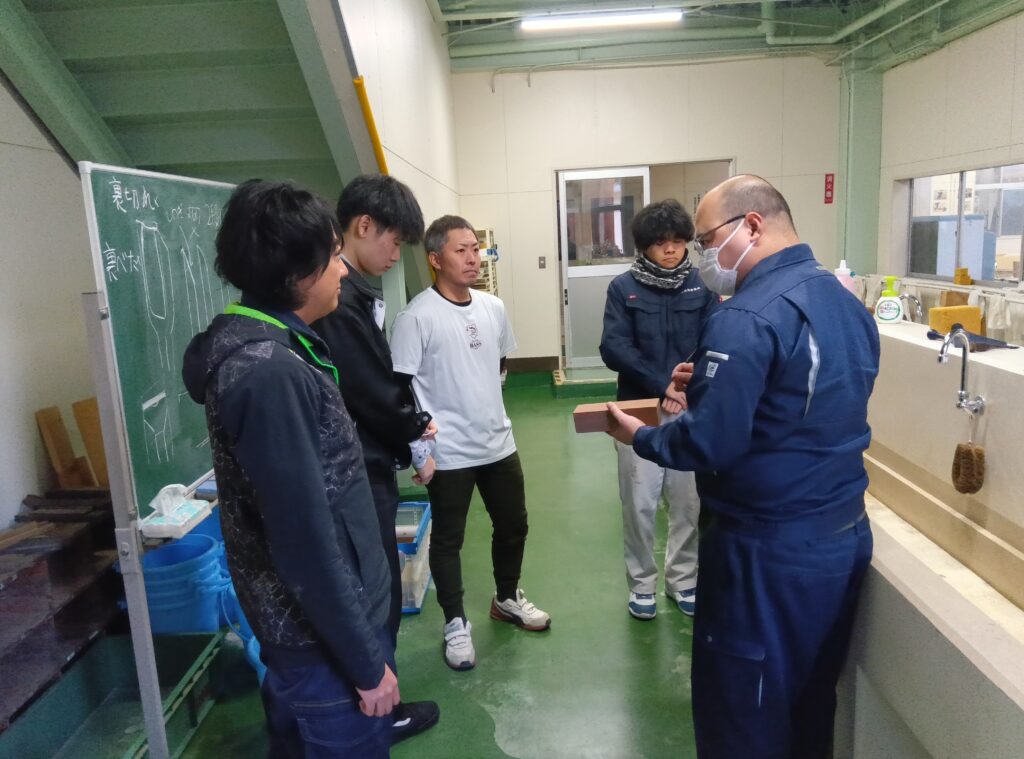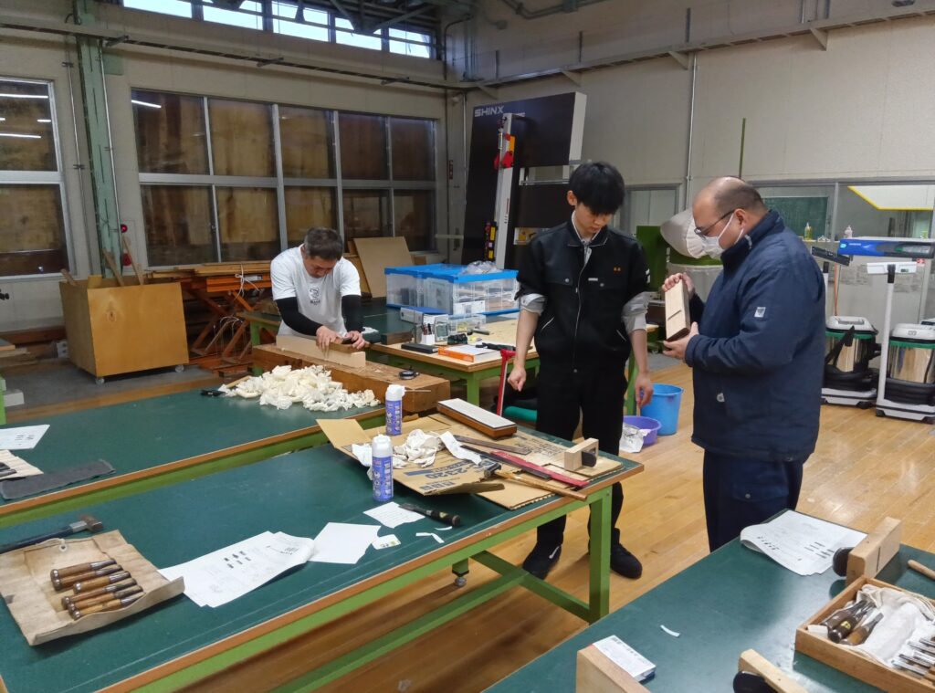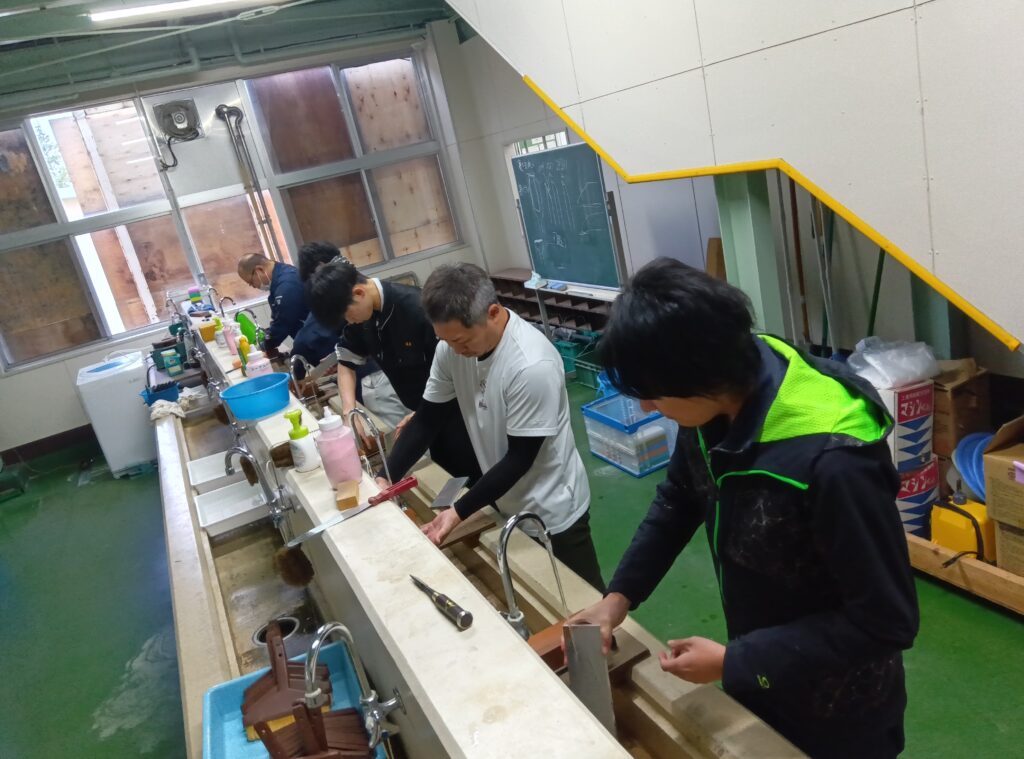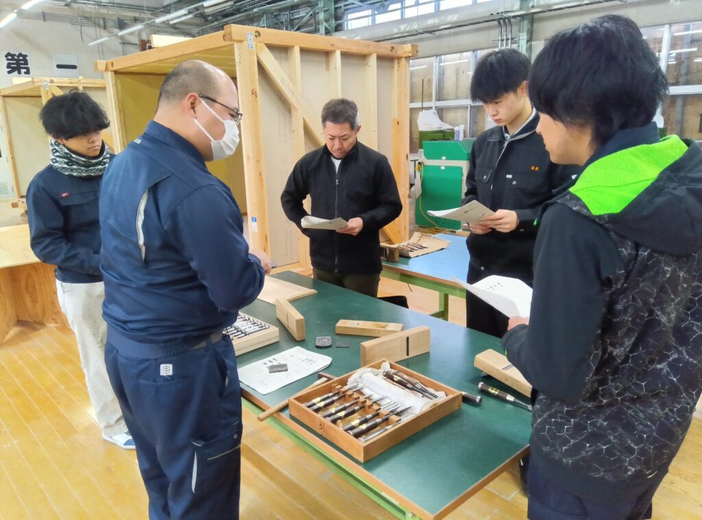青森大工技能者育成アカデミー2025『刃物の研ぎ方と木材の加工方法』 2025年12月1日 By 協会スタッフ 投稿先 未分類 当協会員の若手大工が参加する、青森大工技能者育成アカデミー(全8回)の第5回を開き、受講者は鉋(カンナ)や鑿(ノミ)といった大工道具の刃研ぎや木材の加工について学びました。 第5回目となる今回は、青森ポリテクセンター(青森市)で講師の澤田大地さんからご指導いただき、受講者は澤田先生の説明を熱心に聞き、大工道具の刃研ぎに打ち込んでいました。 砥石の面直しからカンナ刃の研ぎを行い、①荒研ぎ②中研ぎ③仕上げ研ぎで研いだあと、それぞれのカンナの切れあじを確かめました。